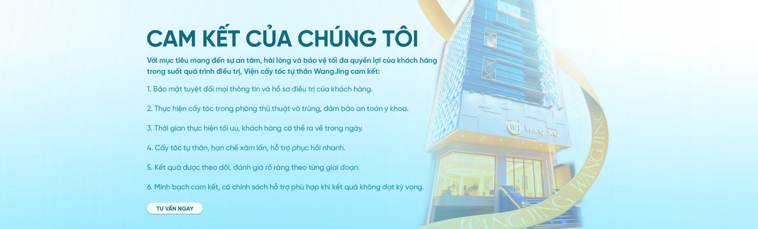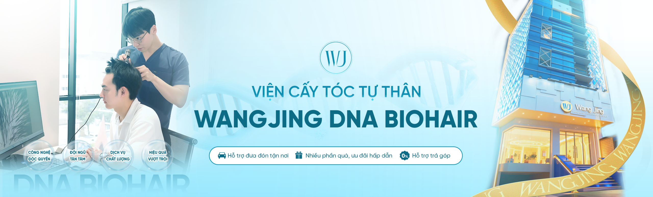 Viện Cấy Tóc Tự Thân WangJing là một trong những đơn vị tiên phong trong lĩnh vực cấy tóc tự thân tại Việt Nam, ứng dụng các công nghệ cấy tóc hiện đại được chuyển giao từ những nền y học thẩm mỹ phát triển. Ngay từ khi thành lập, WangJing đã định hướng xây dựng hệ thống điều trị rụng tóc – hói đầu chuyên sâu, lấy hiệu quả và tính an toàn y khoa làm nền tảng. Bên cạnh việc đầu tư công nghệ, Viện còn quy tụ đội ngũ bác sĩ và chuyên gia nhiều năm kinh nghiệm, trực tiếp thăm khám, chẩn đoán nguyên nhân và cá nhân hóa phác đồ điều trị các vấn đề về tóc và da đầu cho từng khách hàng.